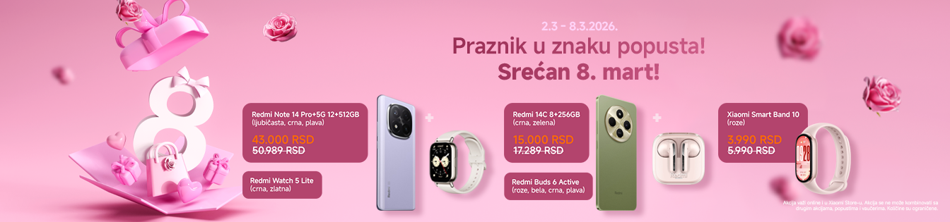 Redmi 14C 8/256GB (crna) + Redmi Buds 6 Active (bela)