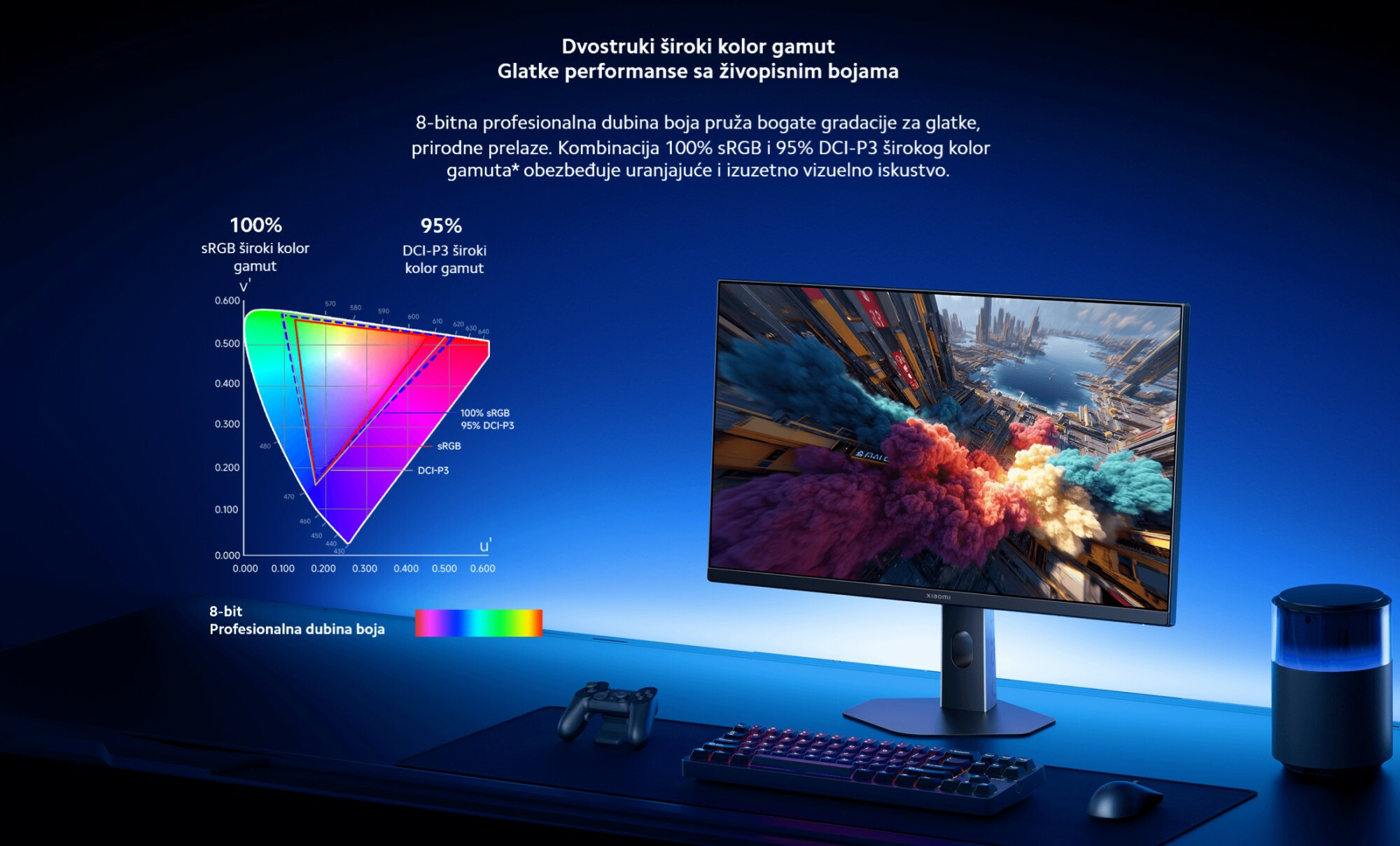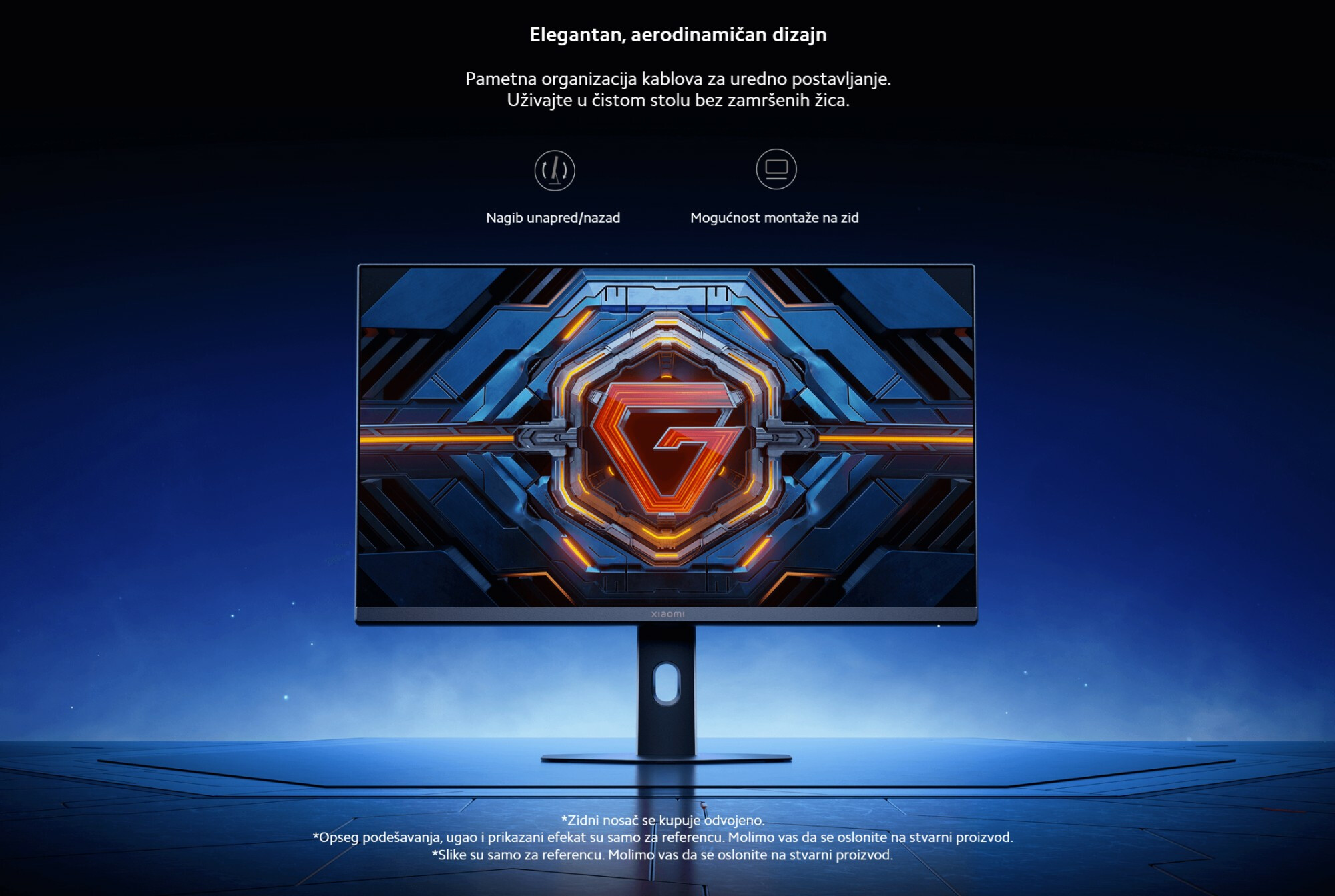 *Prikazani proizvod je Xiaomi gejmerski monitor G24i 2026. Izgled i sadržaj na ekranu su samo u ilustraciju i mogu se razlikovati u zavisnosti od modela. Karakteristike proizvoda, kao što su izgled, boja i dimenzije, kao i sadržaj na ekranu, kao što su pozadine, slike i dizajn korisničkog interfejsa, mogu se razlikovati. Za tačne specifikacije i detalje, pogledajte stranicu proizvoda ili kontaktirajte Mi korisničku službu.