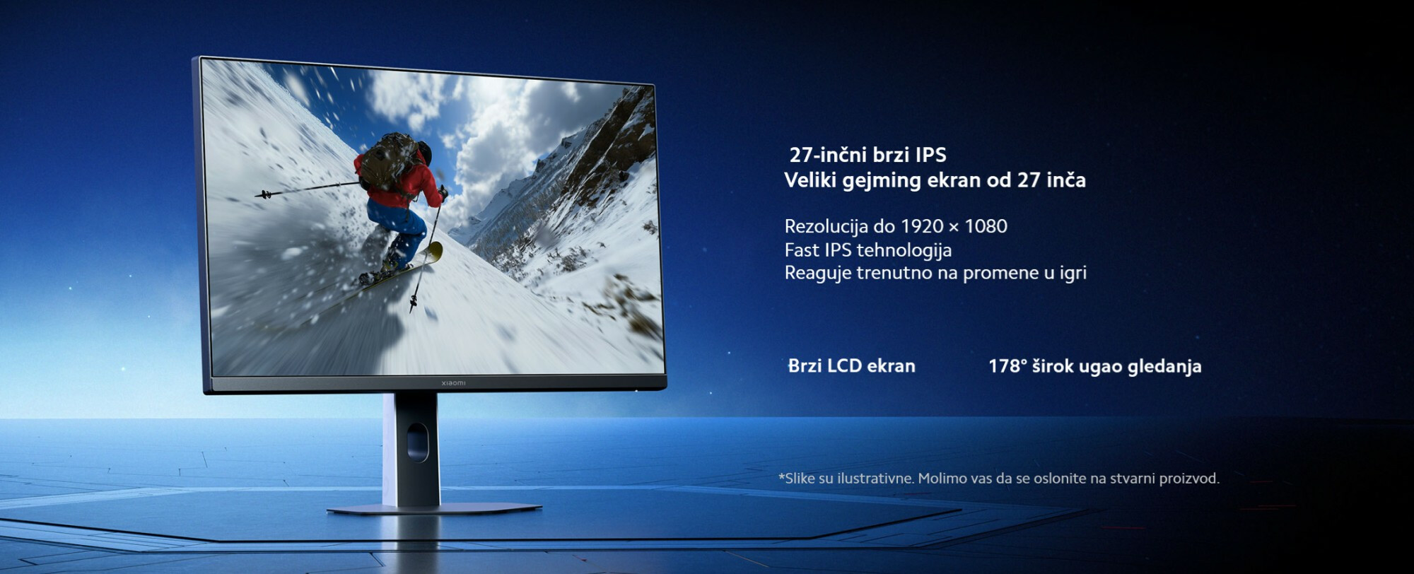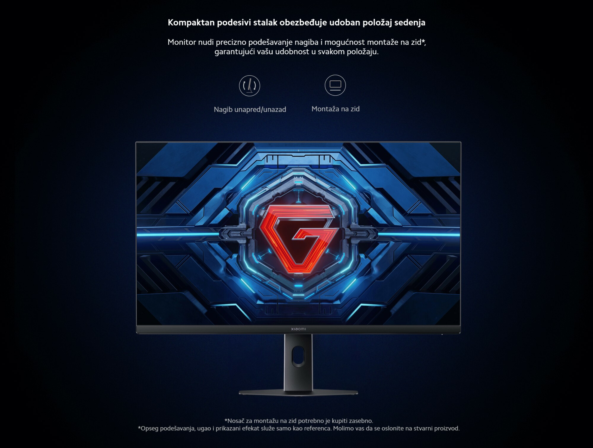 *Prikazani proizvod je Xiaomi Gaming Monitor G27i 2026. Izgled i sadržaj na ekranu služe samo kao ilustracija i mogu da se razlikuju između različitih modela. Karakteristike proizvoda, poput izgleda, boje i dimenzija, kao i sadržaj na ekranu, poput pozadina, slika i dizajna interfejsa, mogu da variraju. Za tačne specifikacije i detalje, molimo vas da posetite stranicu proizvoda ili kontaktirate Mi korisničku podršku.