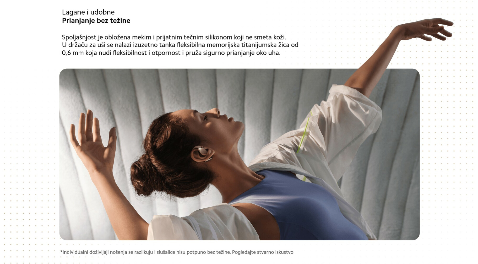 *Individualni doživljaji nošenja se razlikuju i slušalice nisu potpuno bez težine. Pogledajte stvarno iskustvo.