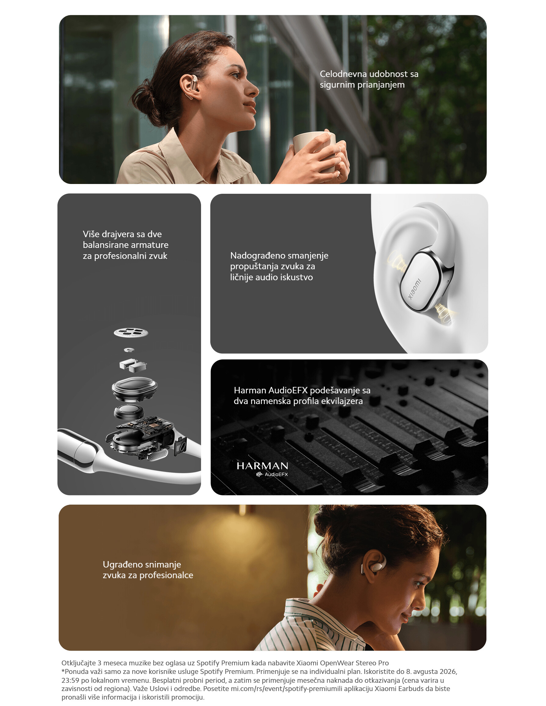 *Ponuda važi samo za nove korisnike usluge Spotify Premium. Primenjuje se na individualni plan. Iskoristite do 8. avgusta 2026, 23:59 po lokalnom vremenu. Besplatni probni period, a zatim se primenjuje mesečna naknada do otkazivanja (cena varira u zavisnosti od regiona). Važe Uslovi i odredbe. Posetite mi.com/rs/event/spotify-premium ili aplikaciju Xiaomi Earbuds da biste pronašli više informacija i iskoristili promociju.