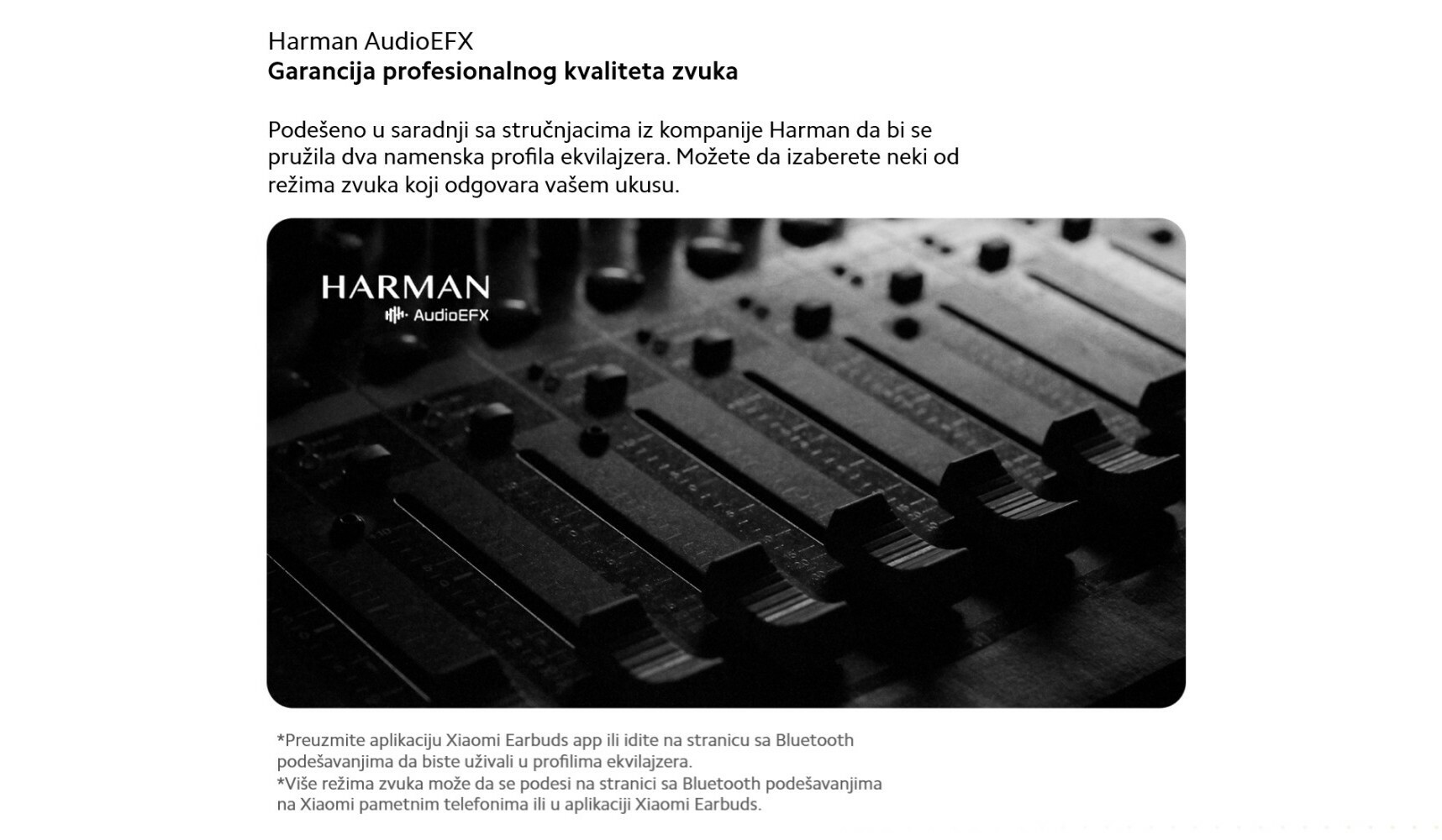 *Više režima zvuka može da se podesi na stranici sa Bluetooth podešavanjima na Xiaomi pametnim telefonima ili u aplikaciji Xiaomi Earbuds.