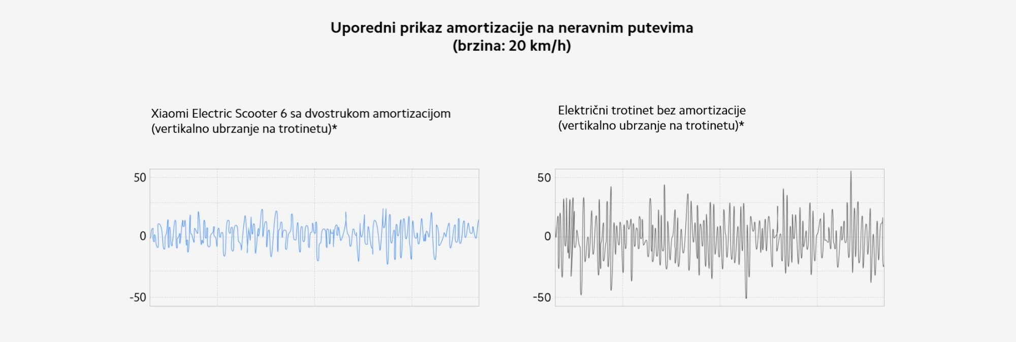 *Režim za pešake: Pod istim uslovima korišćenim za testiranje maksimalne brzine, električni trotinet je dostigao brzinu od 6 km/h u režimu za pešake.