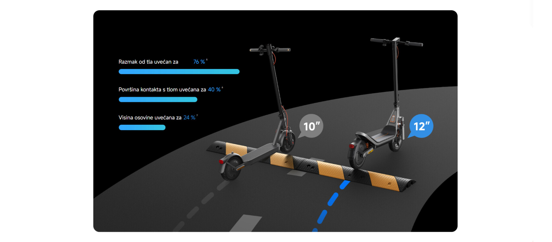 *Rastojanje od tla do platforme Xiaomi Electric Scooter Elite iznosi 92 mm, dok Xiaomi Electric Scooter 6 ima rastojanje od 162 mm.