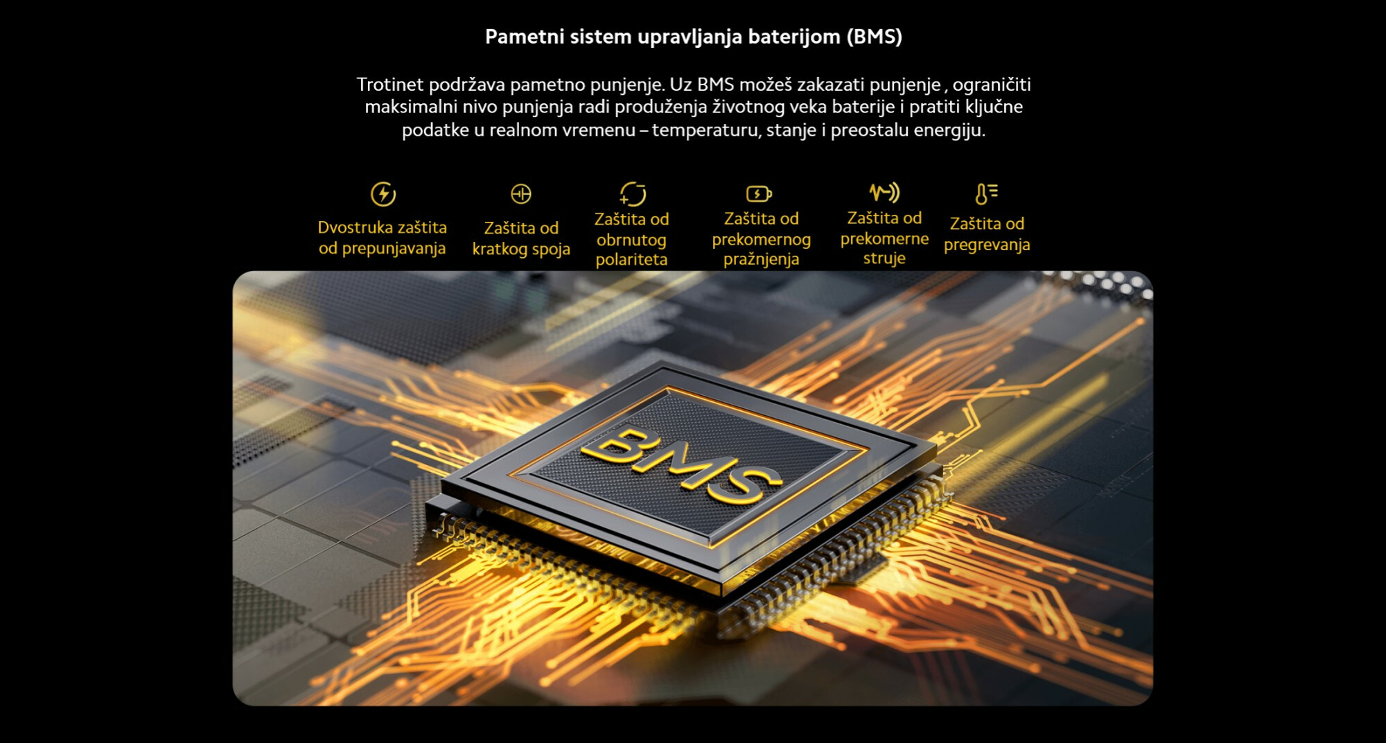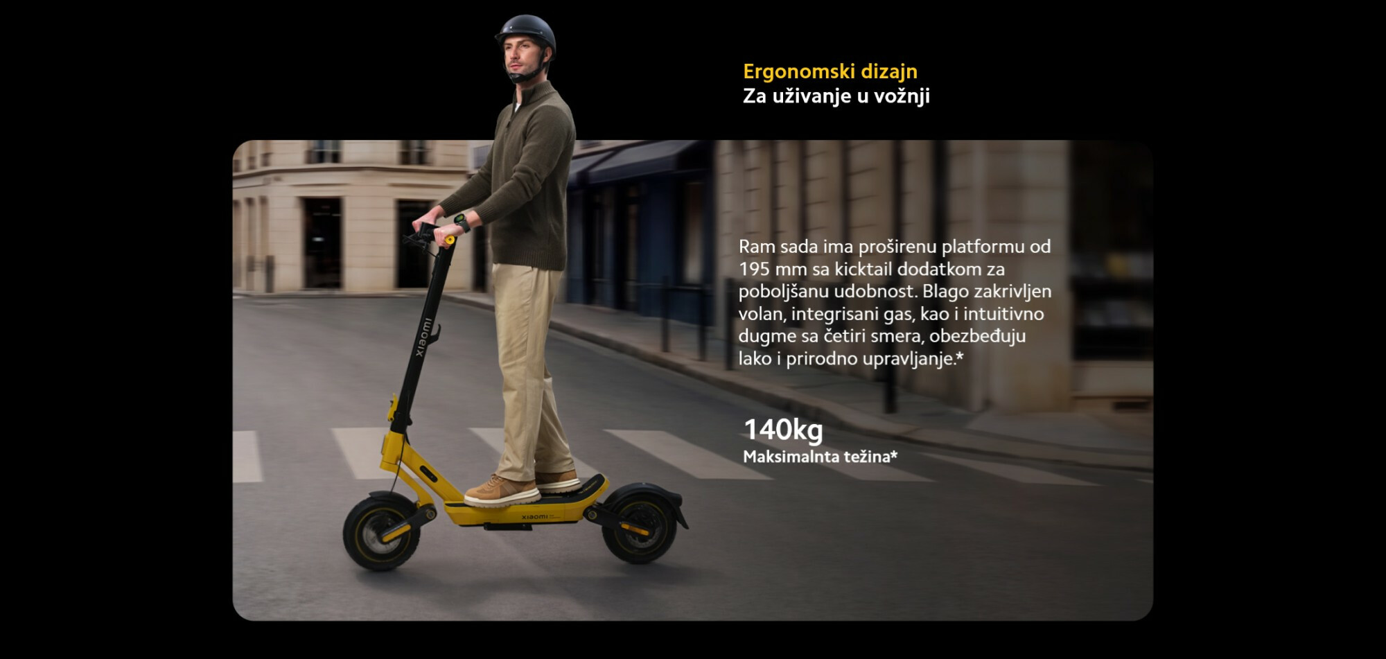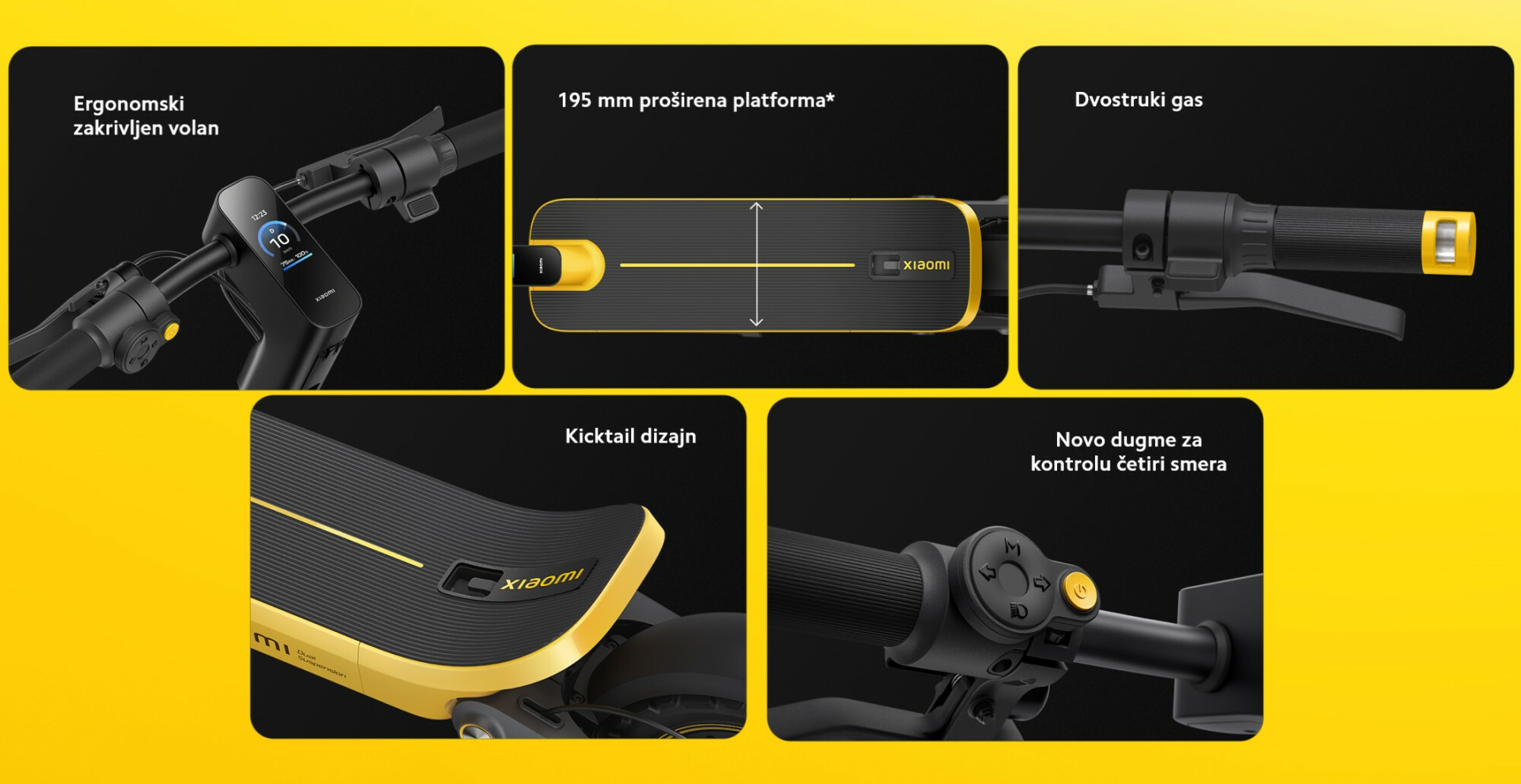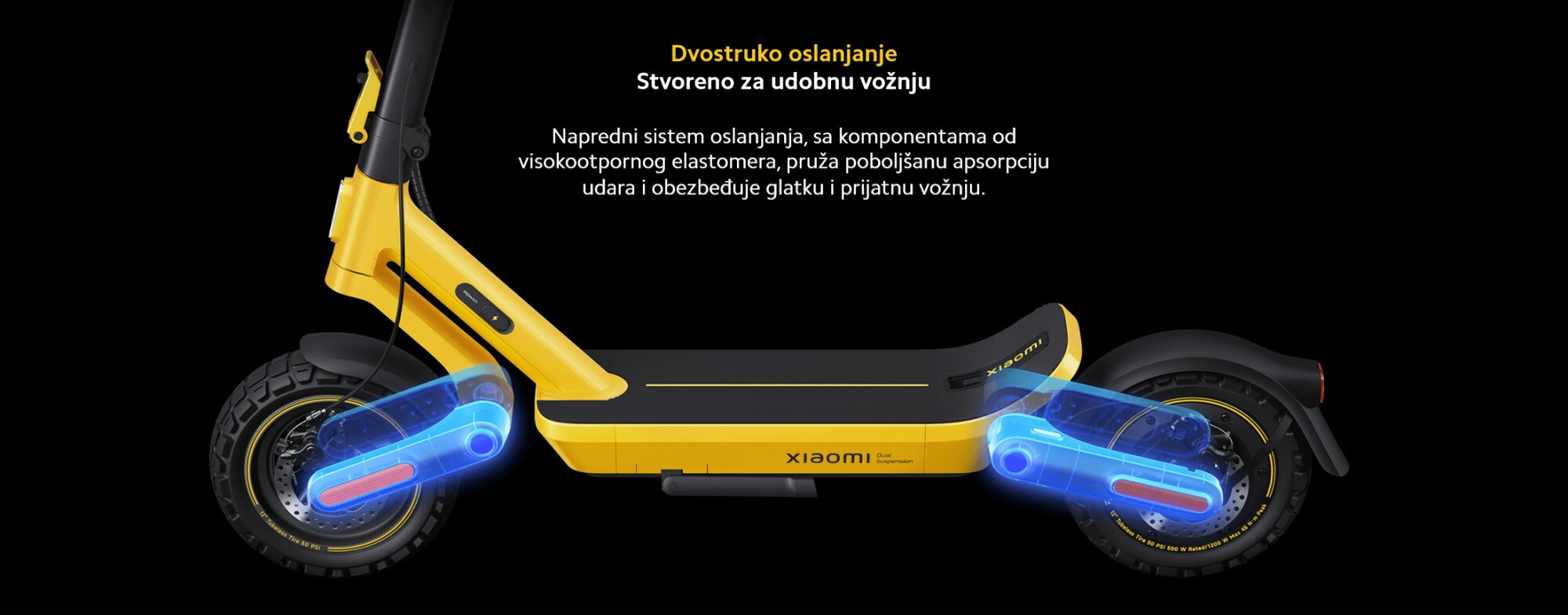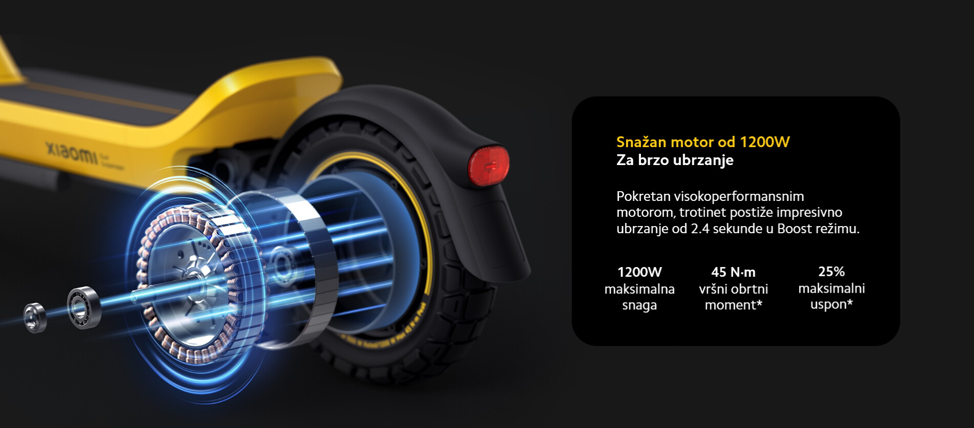 | Dodatne informacije | Povezivanje putem Xiaomi Home aplikacije; 12" terenske gume; Prednje i zadnje disk kočnice; Ergonomski dizajn; Terenska vožnja; TCS sistem protiv proklizavanja; Pametni sistem upravljanja baterijom |