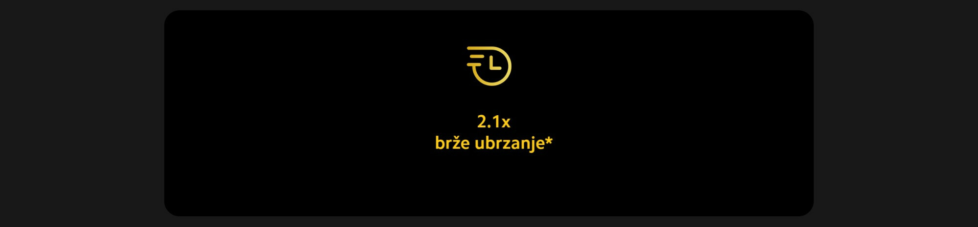*Ubrzanje od 2,4 s: Prosečno ubrzanje u režimu pojačanja od 8 do 24 km/h je 2,4 sekunde.
