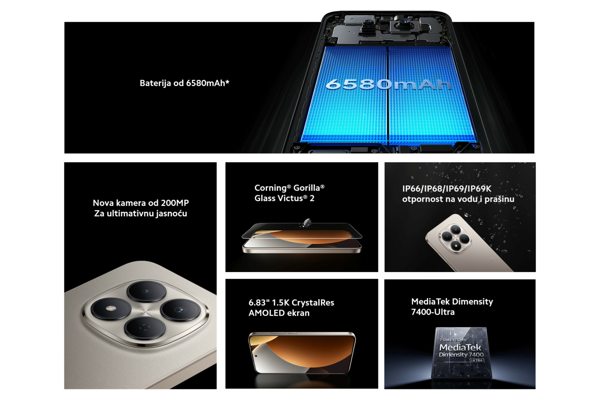 *Podaci upoređeni sa REDMI Note 14 Pro 5G. Stvarni efekti mogu varirati u zavisnosti od softvera i scenarija, molimo pogledajte stvarnu upotrebu.