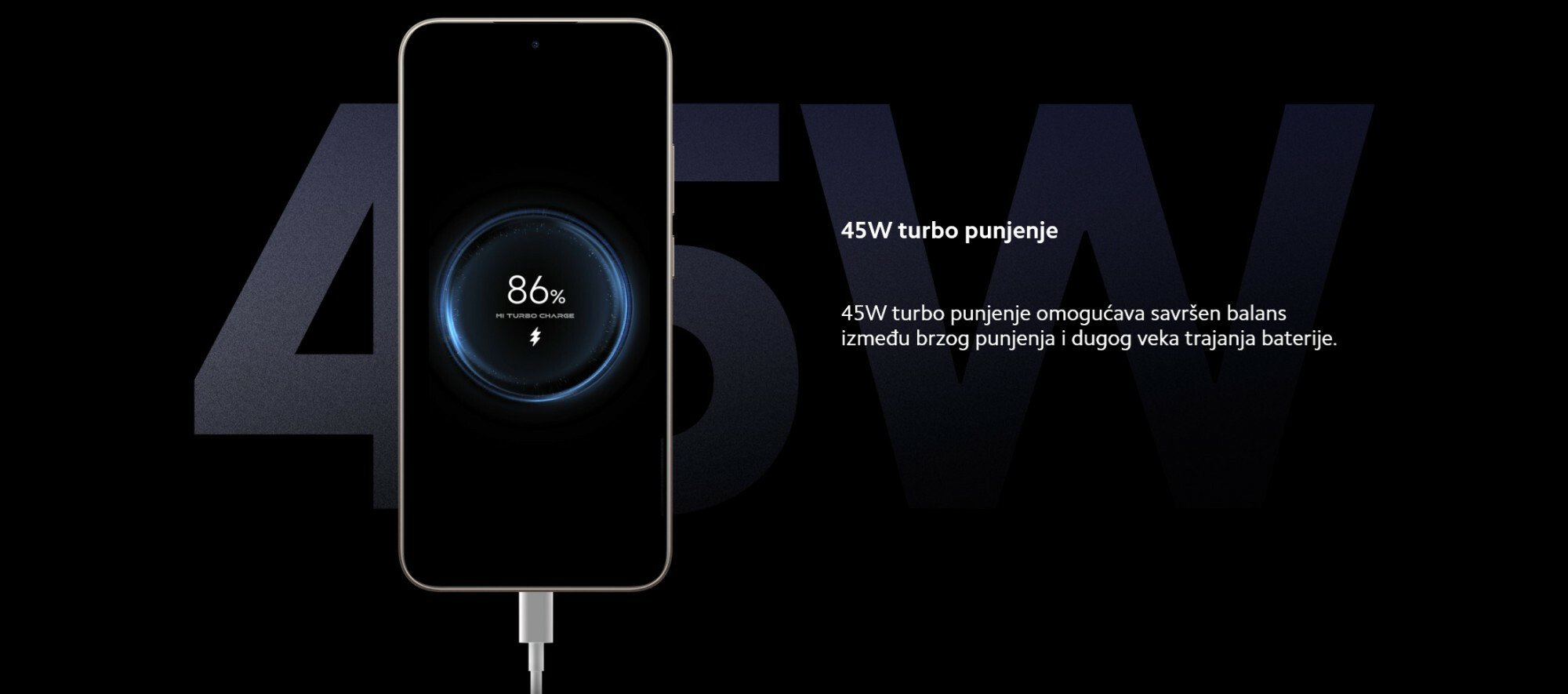 *Adapter za napajanje nije uključen u kutiju. Preporučuje se upotreba adaptera za napajanje od 45W koji podržavaju PD punjenje ili zvaničnog Xiaomi adaptera za napajanje od 45W.