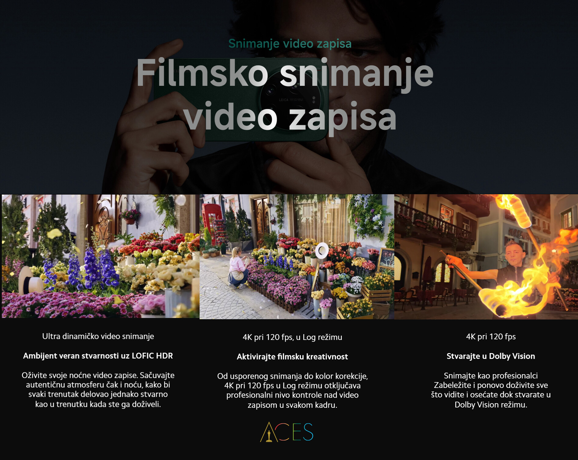 | Video | 8K pri 30 fps; 4K Dolby Vision® pri 30 fps, 60 fps, 120 fps; 1080p Dolby Vision® pri 30 fps, 60 fps; 720p pri 30 fps; Log video snimanje do 4K pri 120 fps; Sporo snimanje do 1080p pri 1920 fps; Noćno video snimanje do 4K pri 24 fps |