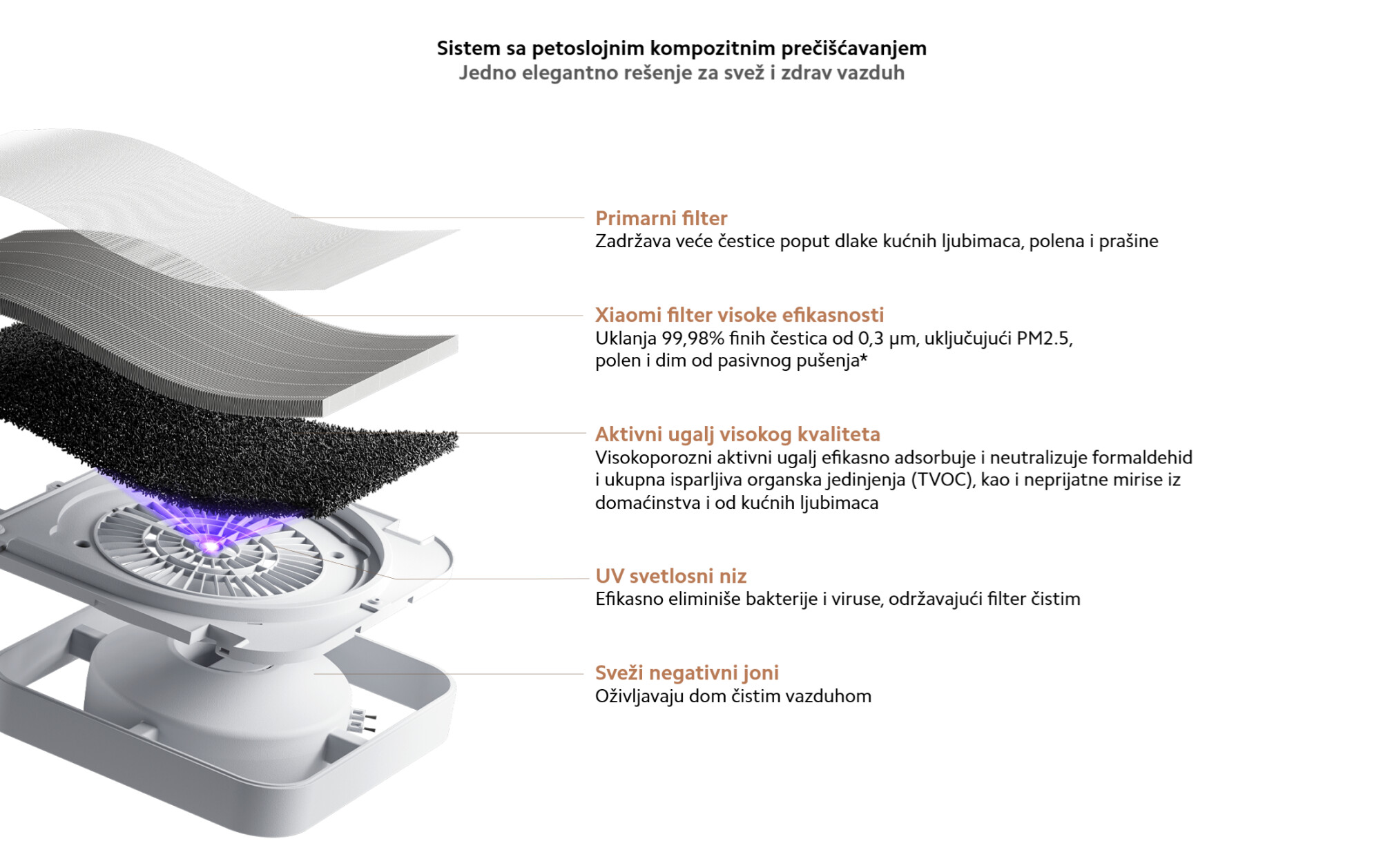 *99,9% brzina uklanjanja P. aeruginosa za 1 sat: Podaci potiču od Korejskih laboratorija za usaglašenost. Broj izveštaja: CD25-00207K.