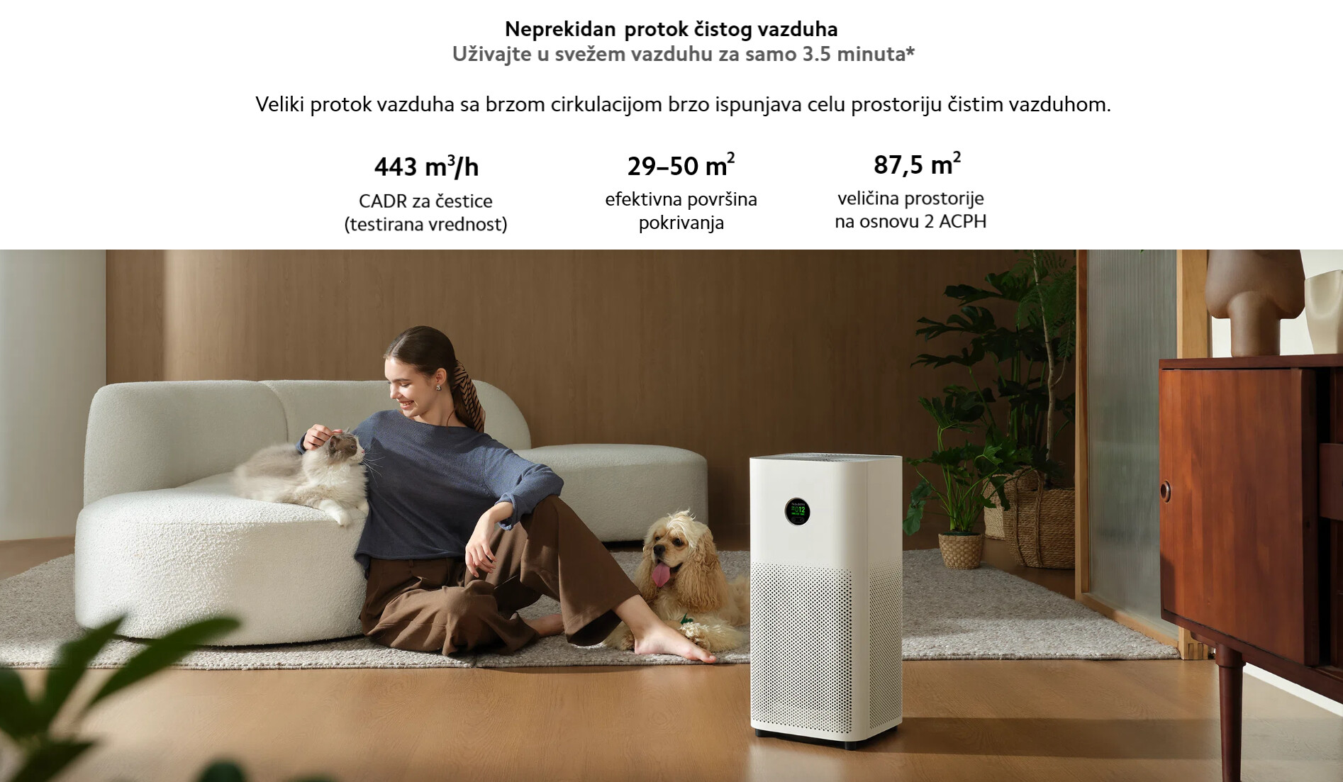*443 m³/h CADR čestica (testirana vrednost): Podaci potiču od Guangdžou Instituta za mikrobiologiju Grupe Ko., Ltd. Broj izveštaja: KJ2025001525E.