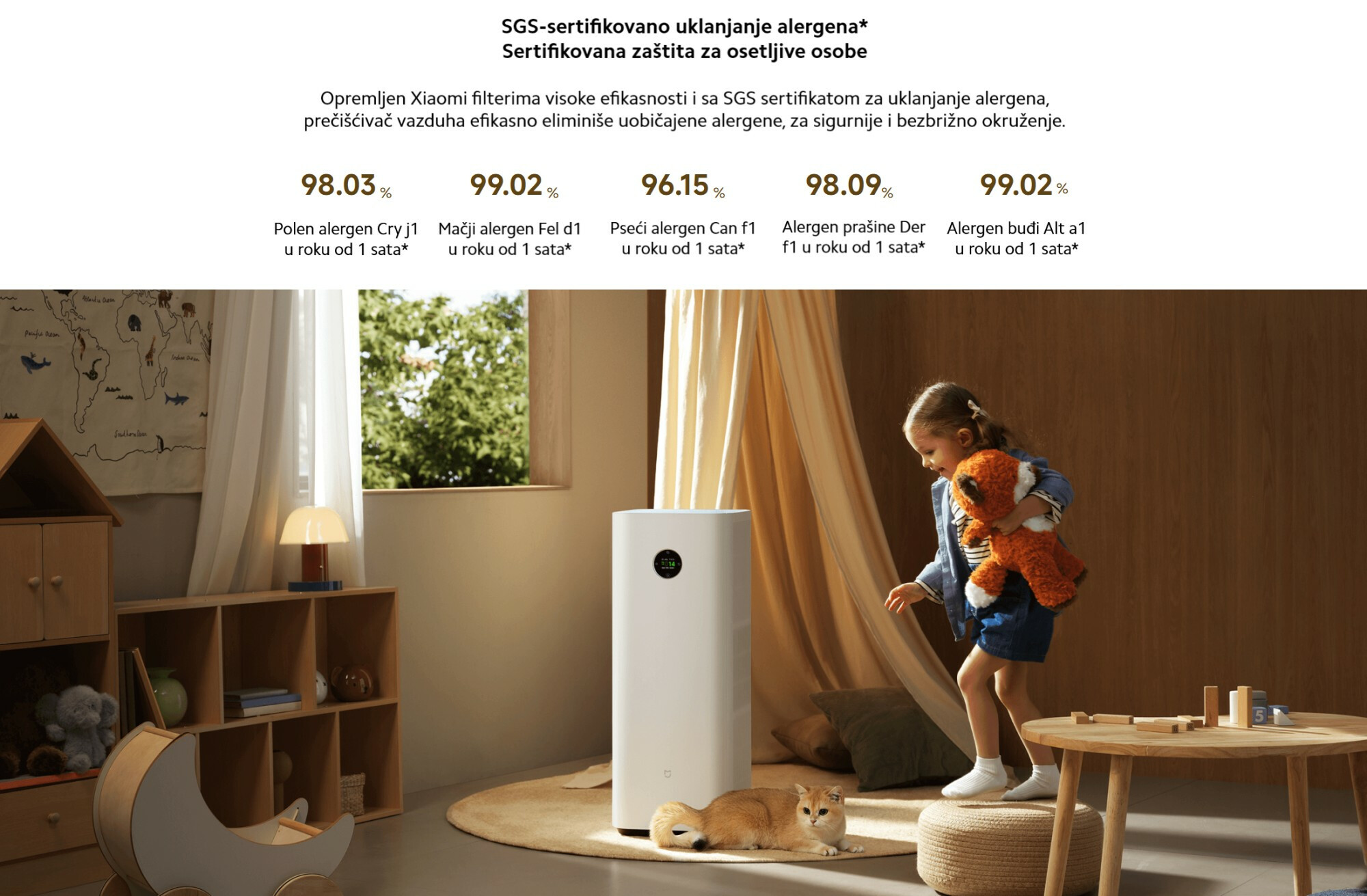 *Uklanjanje alergena SGS sertifikacija: Sertifikacija potiče od SGS-CSTC Standards Technical Services (Tianjin) Co., Ltd. Broj izveštaja o sertifikaciji: RSTSQD251104000101.