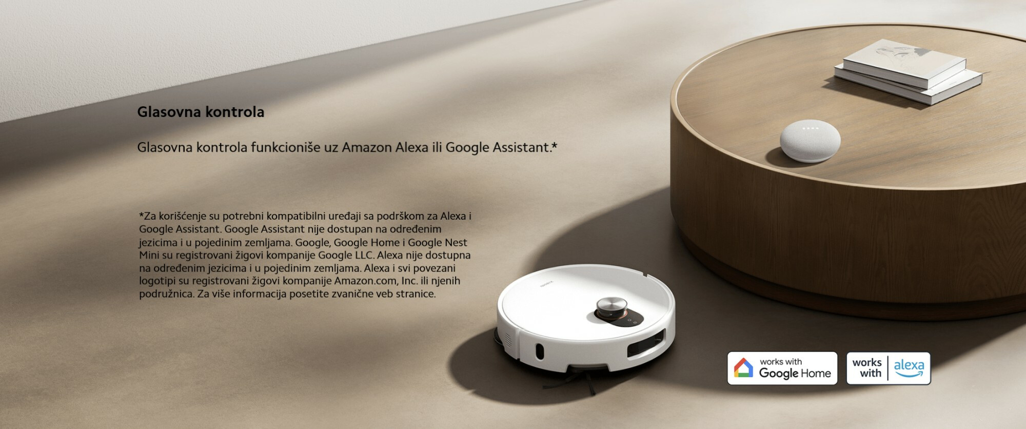 *Potrebni su kompatibilni uređaji sa omogućenom Aleksom i Google asistentom. Google asistent nije dostupan na određenim jezicima i u određenim zemljama. Google, Google Home i Google Nest Mini su zaštitni znakovi kompanije Google LLC. Alexa nije dostupna na određenim jezicima i u određenim zemljama. Alexa i svi povezani logotipi su zaštitni znakovi kompanije Amazon.com, Inc. ili njenih filijala. Za više informacija posetite zvanične veb stranice.