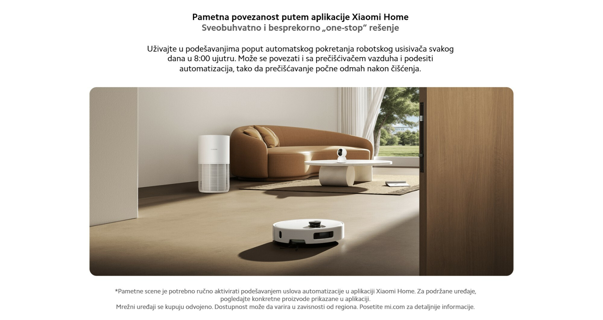 *Pametne scenarije je potrebno ručno omogućiti podešavanjem uslova automatizacije u Xiaomi Home-u. Da biste saznali koji su uređaji podržani, pogledajte određene proizvode prikazane u aplikaciji.