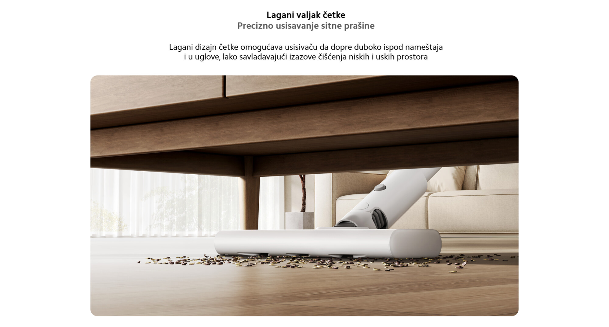 *Fine čestice prašine od 0,3mm: Čitav usisivač je testirala kompanija SGS-CSTC Standard Technical Service Co., Ltd., filijala u Sudžouu, u skladu sa klauzulom 5.11 standarda IEC 62885-4:2020, što dokazuje da mašina može da filtrira 99,8% čestica veličine 0,3-10mm. Zbog eksperimentalnih ograničenja, stvarni rezultati mogu da variraju. Broj izveštaja: SHFT250700033671.