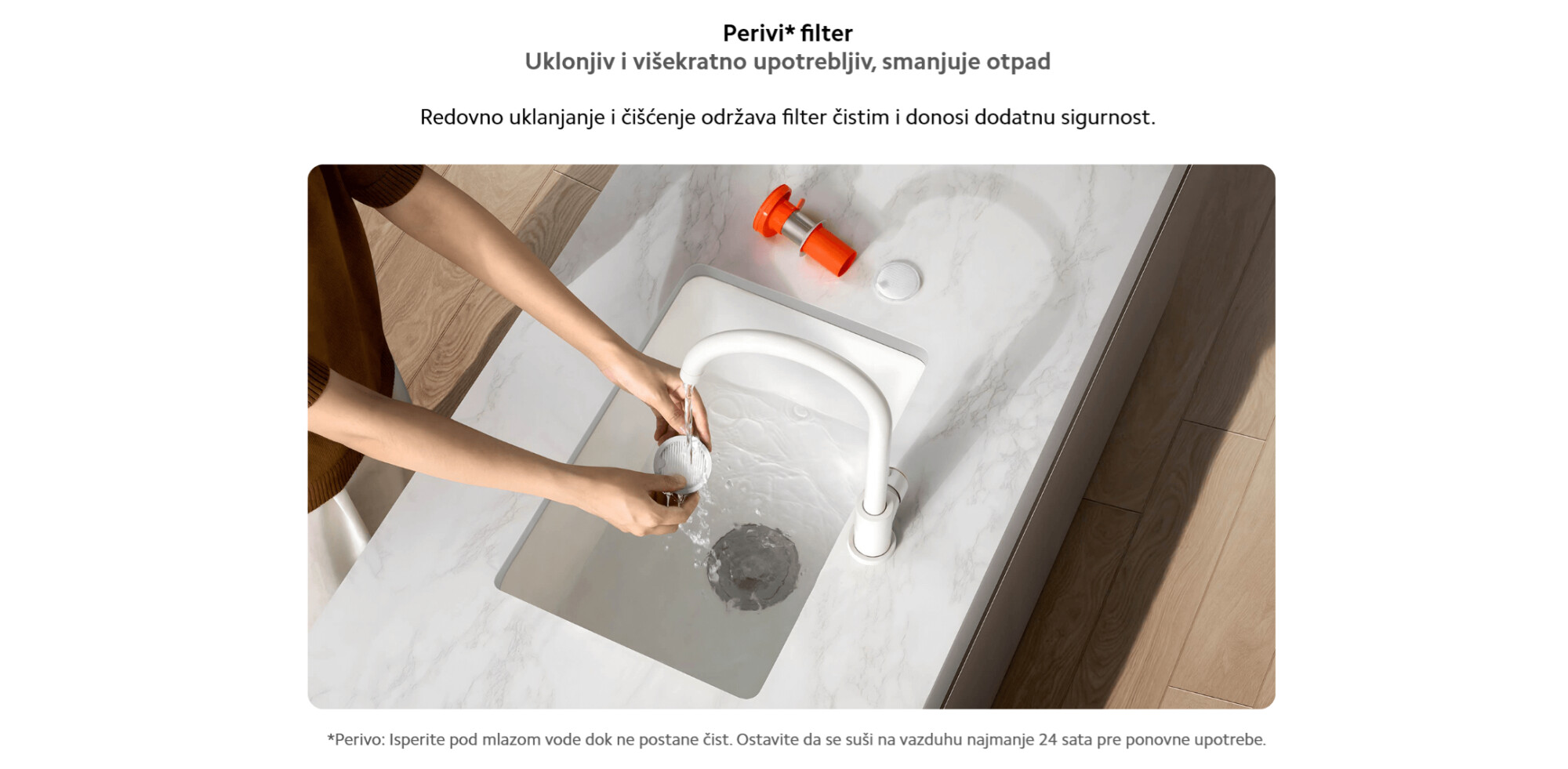*Efikasnost filtracije cele jedinice od 99,8%: Čitav usisivač je testirala kompanija SGS-CSTC Standard Technical Service Co., Ltd., filijala u Sudžouu, u skladu sa klauzulom 5.11 standarda IEC 62885-4:2020, što dokazuje da mašina može da filtrira 99,8% čestica veličine 0,3-10mm. Zbog eksperimentalnih ograničenja, stvarni rezultati mogu da variraju. Broj izveštaja: SHFT250700033671.