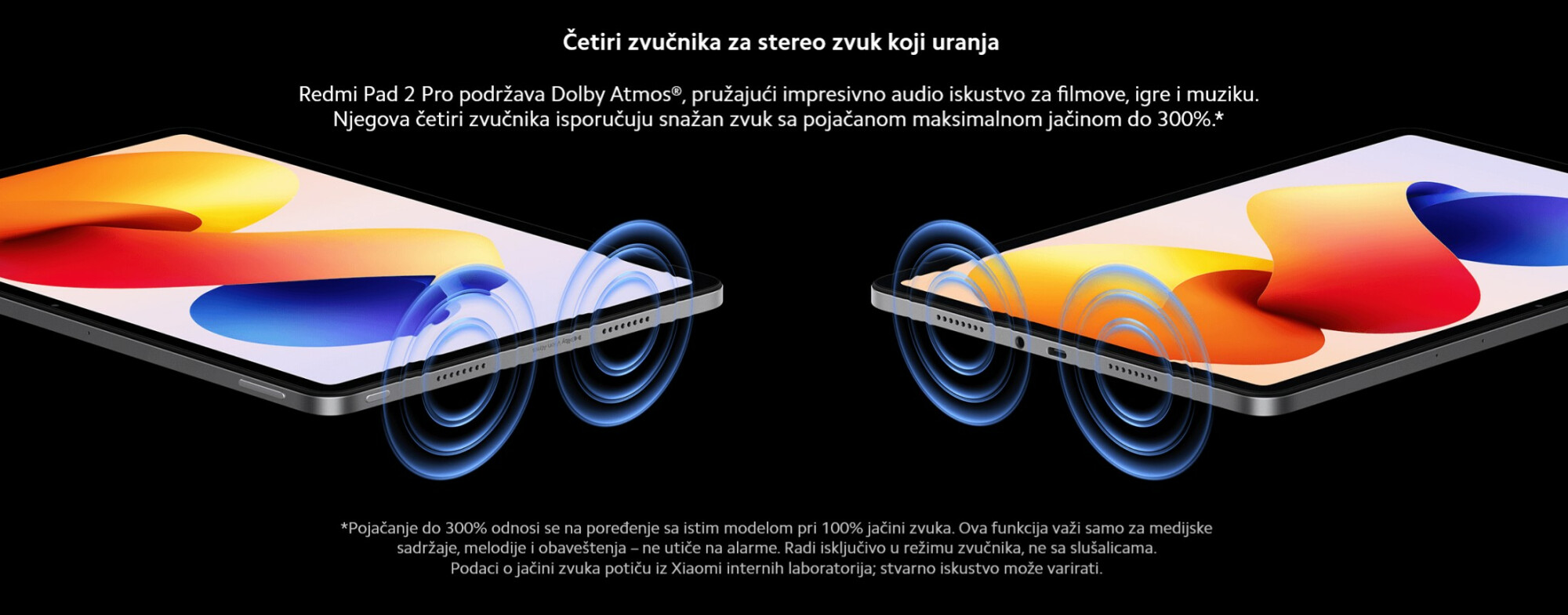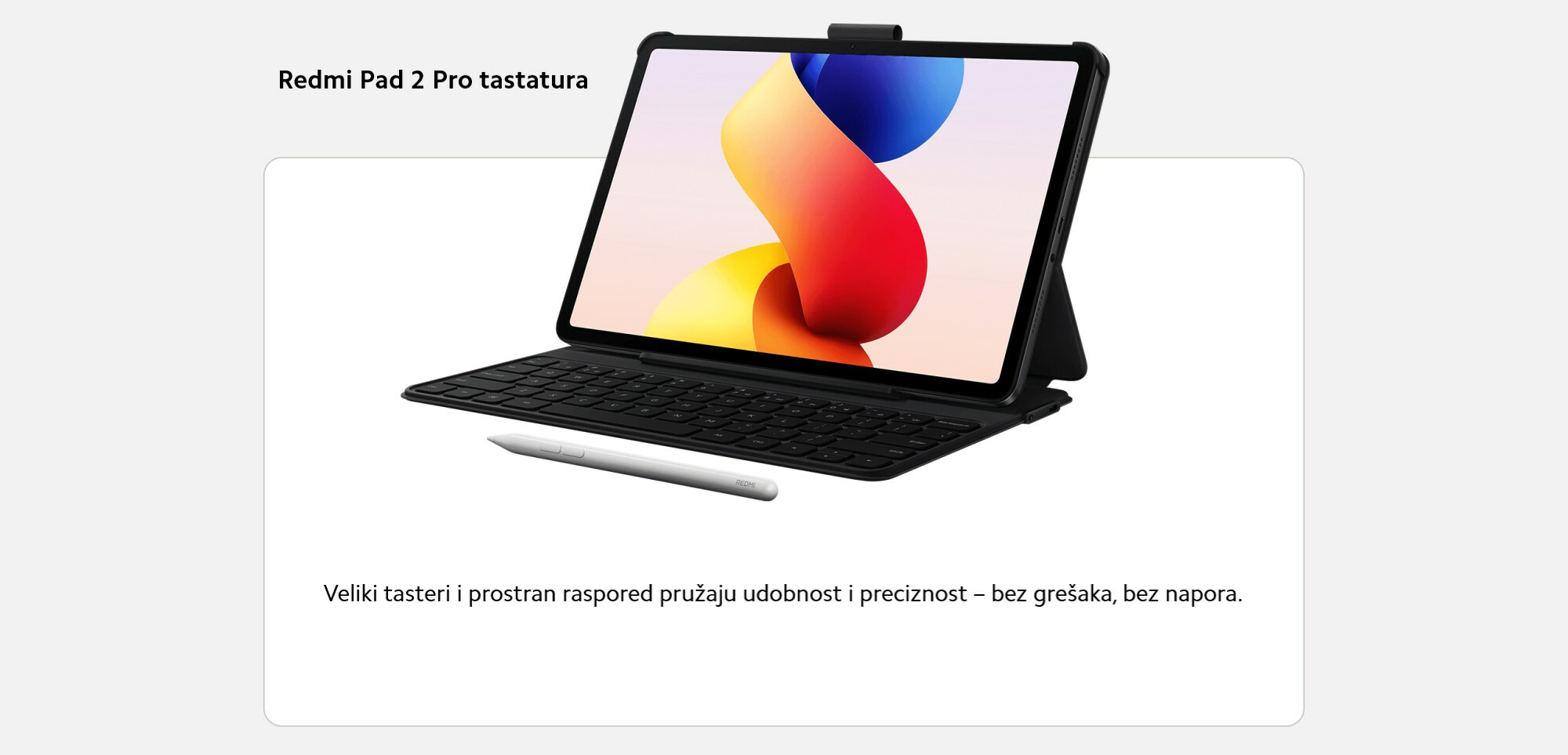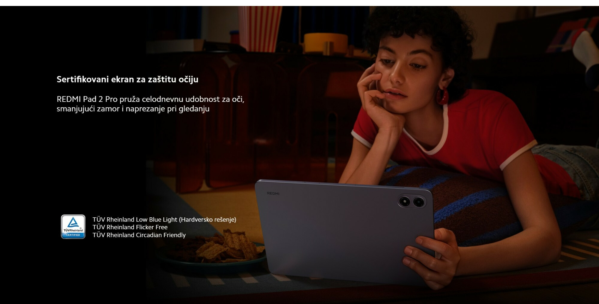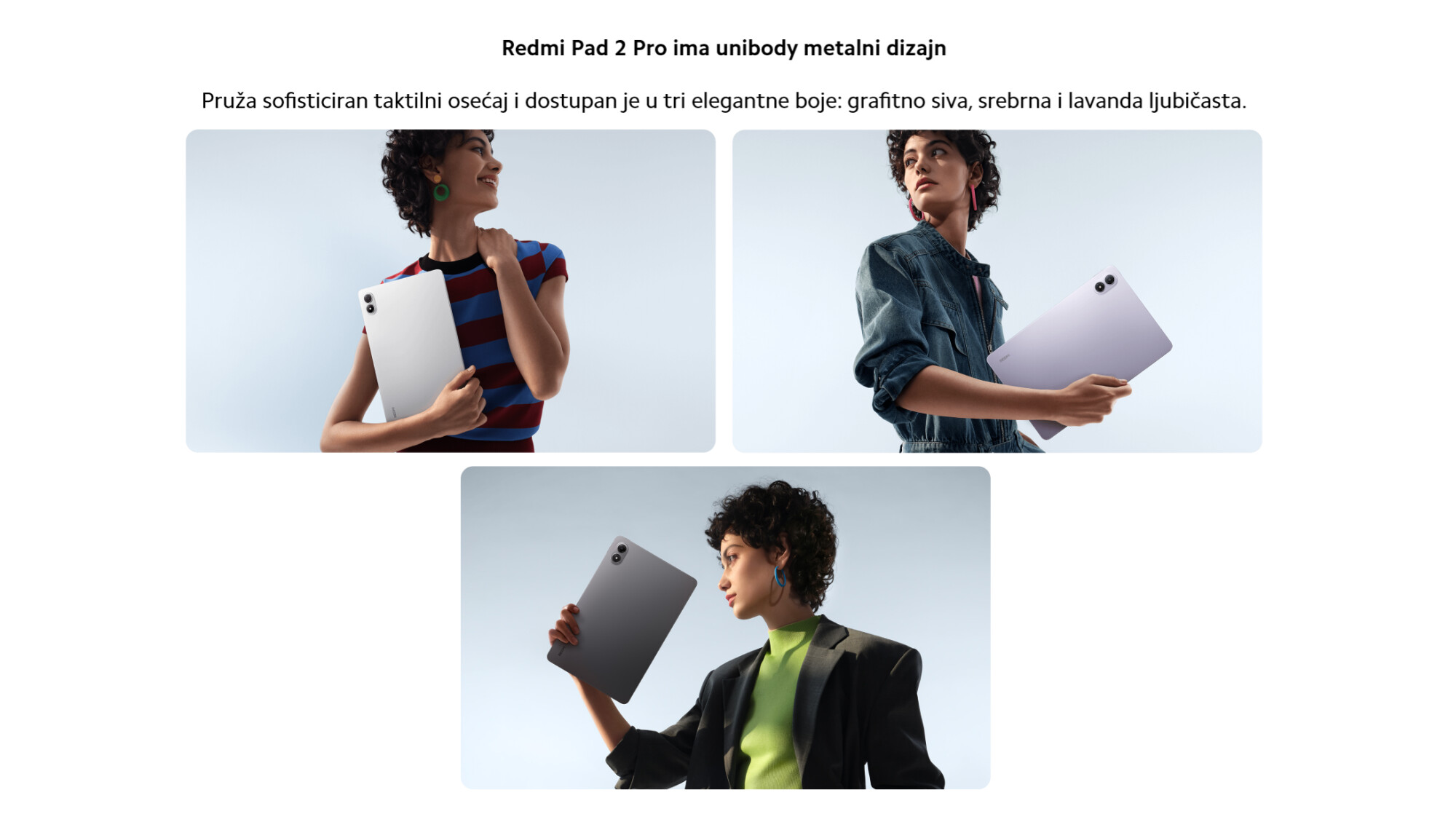*Veličina ekrana Redmi Pad 2 Pro iznosi oko 12,1 inča dijagonalno. Vidljiva površina je manja zbog zaobljenih uglova. Mere mogu varirati između pojedinačnih uređaja